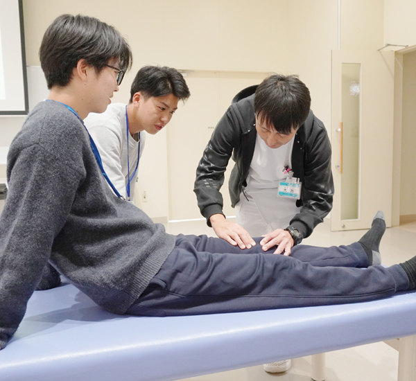 理学療法士が関節が固くなってしまった患者さんに実施するストレッチなどを体験していただきます。